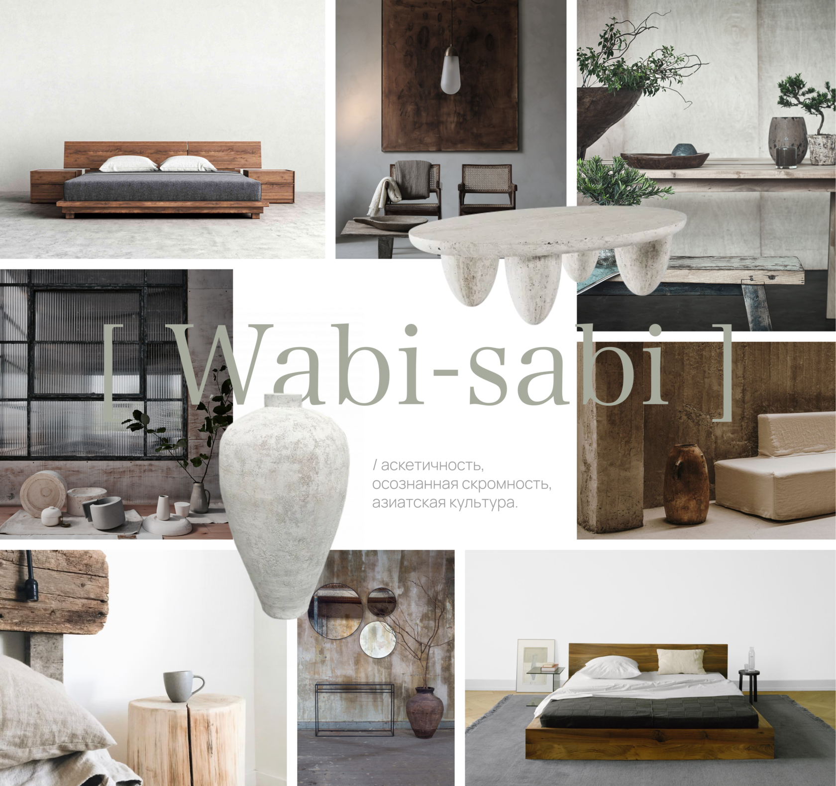 Эргономичность и экологичность, завораживающее богатство нищеты и японский минимализм. Wabi-Sabi покорит сердце того, кто способен видеть красоту и утонченность в простых линиях, текстурах и деталях.